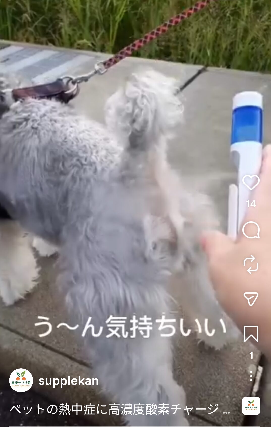 お散歩中の『もしも』の時に備えます。愛犬を守るお守り酸素ミスト。ハアハアが止まらない時にシューッとひと吹き。シニア犬の毎日をもっと楽に。深い呼吸で健やかな暮らしを。大切な家族だから一番質のいい酸素を。熱中症対策の新常識。水と一緒に高濃度酸素を携帯しましょう。