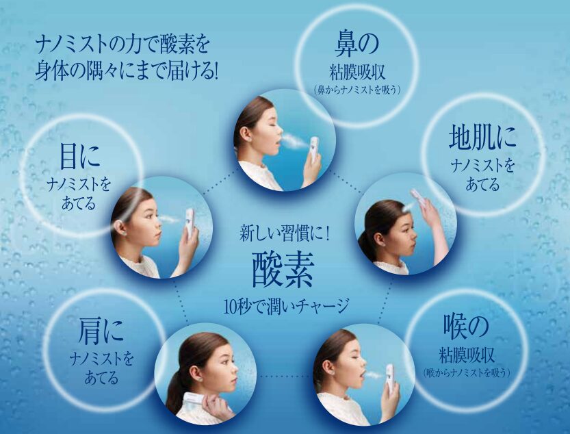 - 「忙しい毎日に、酸素のシャワーを。シューッと10秒ひと吹きで心身をリセット」